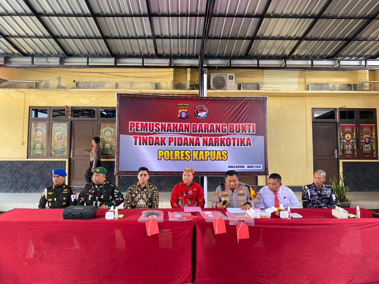 Kuala Kapuas, 12 Maret 2026 Ketua Pengadilan Negeri Kuala Kapuas diwakili oleh Bapak Thyan Prasetyo Adam, S.H, menghadiri acara Pemusnahan Barang Bukti Tindak Pidana Narkotika bertempat diMapolres Kapuas.