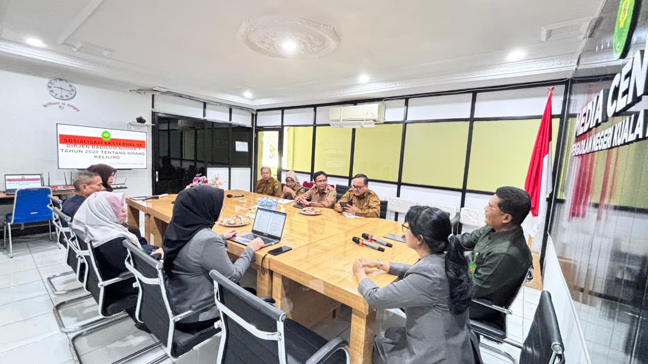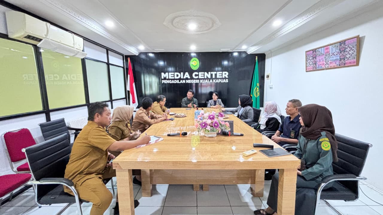 Kuala Kapuas, 14 April 2026 Pengadilan Negeri Kuala Kapuas mengadakan Sosialisasi Eksternal sesuai SE Dirjend Badilum Nomor 3 Tahun 2020 tentang Pelaksanaan Sidang diLuar Gedung Pengadilan, kegiatan ini dihadiri oleh Ketua dan Wakil Ketua Pengadilan Negeri Kuala Kapuas serta Hakim, Panitera Muda Hukum, Panitera Muda Perdata, staf Hukum, Dinas Kependudukan dan Pencatatan Sipil Kabupaten Kapuas selaku Pihak Eksternal bertempat diMedia Center Pengadilan Negeri Kuala Kapuas.